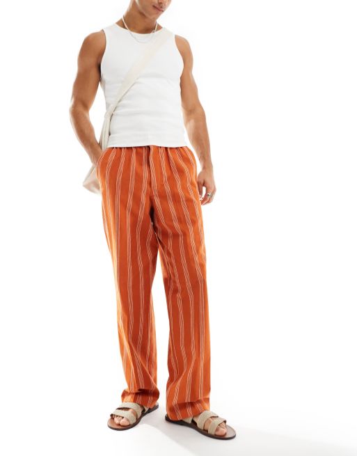ASOS DESIGN smart linen blend wide leg joggers in orange stripe