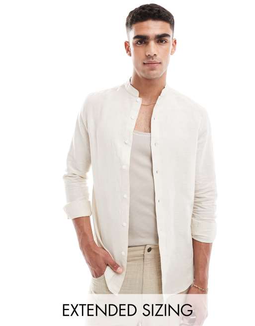 ASOS DESIGN smart linen regular shirt with mandarin collar in ecru