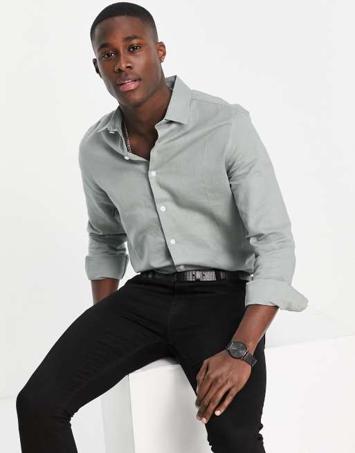 ASOS DESIGN smart linen shirt in smokey green