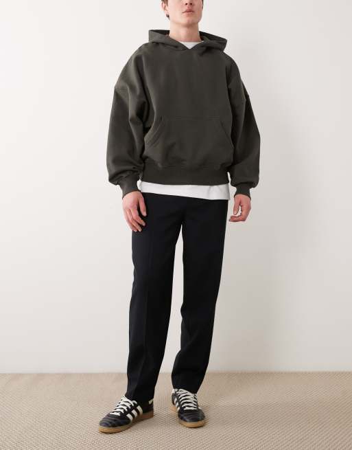 ASOS DESIGN smart oversized tapered trousers in black microtexture with side adjusters