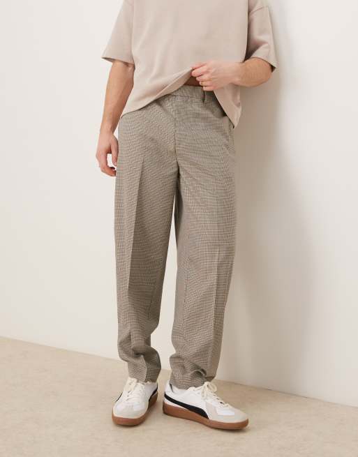 ASOS DESIGN smart oversized tapered trousers in brown microcheck