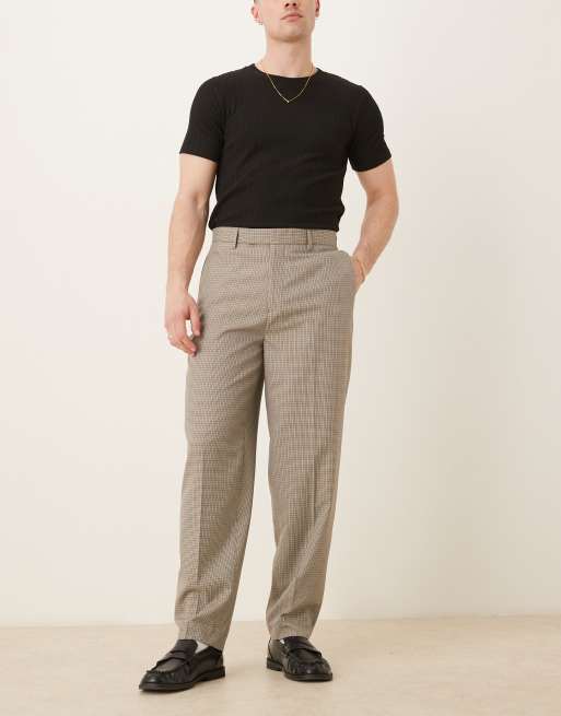 ASOS DESIGN smart oversized tapered trousers in brown microcheck
