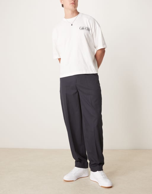 ASOS DESIGN smart oversized tapered trousers in navy pinstripe