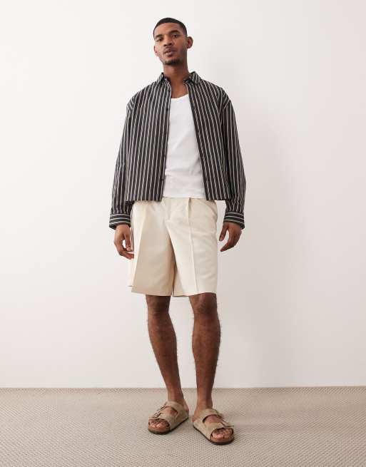 ASOS DESIGN smart pleated bermuda shorts in ecru