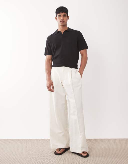 ASOS DESIGN smart pleated linen rich loose leg trousers in white