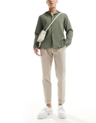 ASOS DESIGN smart premium slim fit chino trousers with turn ups in ecru