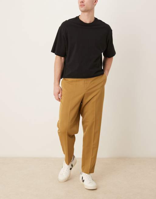 ASOS DESIGN smart relaxed tapered fit trousers in camel