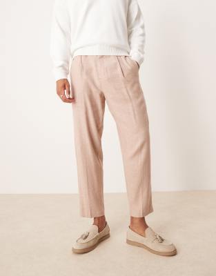 ASOS DESIGN smart relaxed tapered fit trousers in stone herringbone
