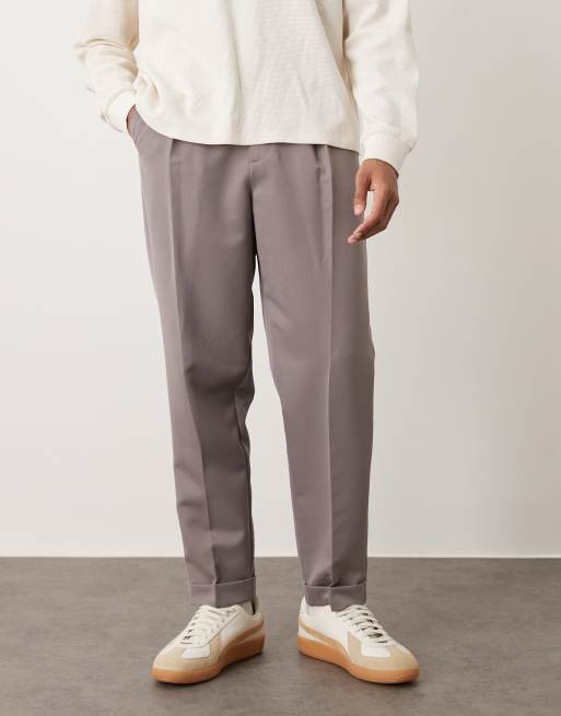 ASOS DESIGN smart relaxed tapered trousers in brown with turnup