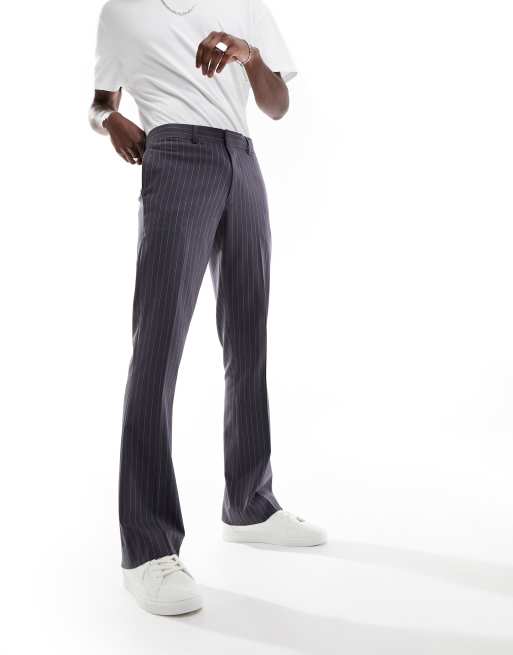 ASOS DESIGN smart skinny flared pinstripe trousers in charcoal