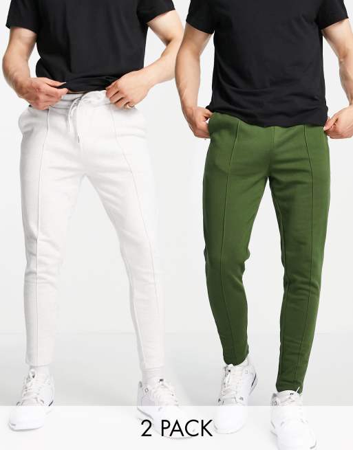 ASOS DESIGN smart skinny joggers with pin tuck front 2 pack in green/white marl - MULTI