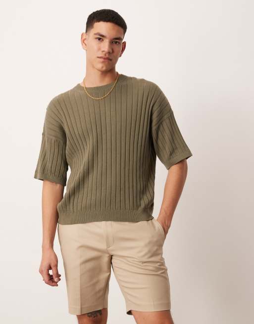 ASOS DESIGN smart slim fit chino shorts with mitred tab in beige