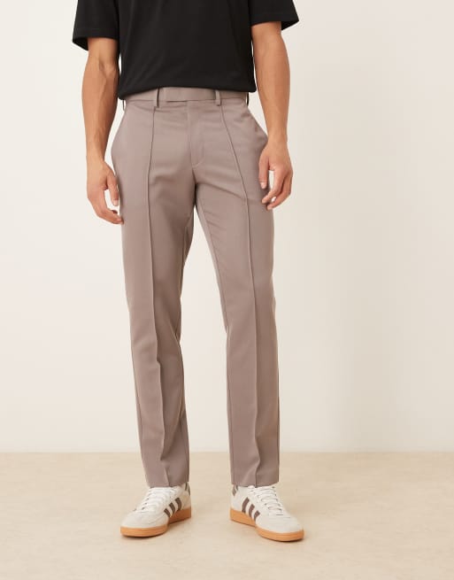 ASOS DESIGN smart slim trousers with pintuck in brown