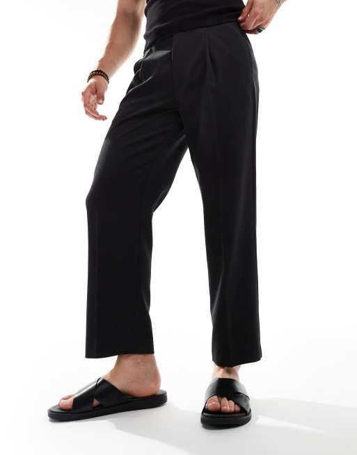 ASOS DESIGN smart straight crop trouser in black