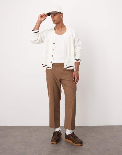 ASOS DESIGN smart straight leg crop length trousers in brown
