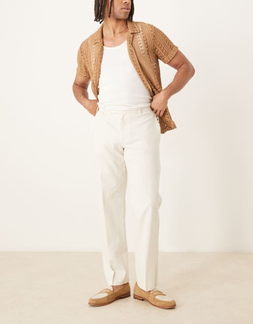 ASOS DESIGN smart straight leg linen blend trousers in ecru