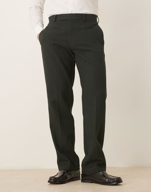 ASOS DESIGN smart straight leg trousers in dark green with wool twill