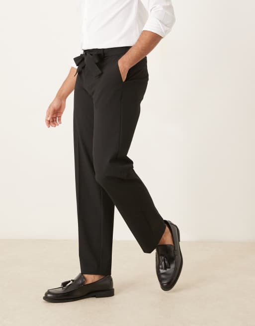 ASOS DESIGN smart straight leg trousers with self fabric belt in black