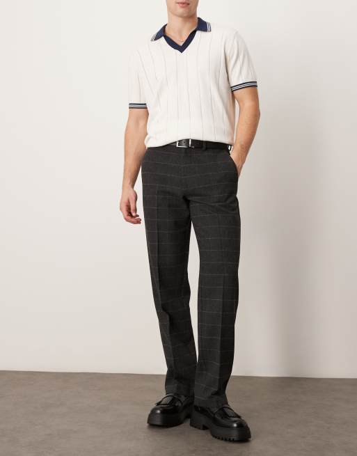 ASOS DESIGN smart straight leg wool mix trousers in grey check