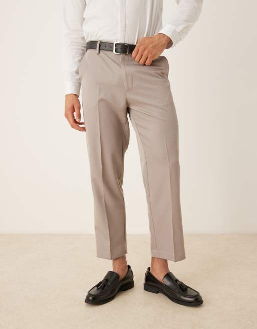 ASOS DESIGN smart tapered cropped trousers in dark stone