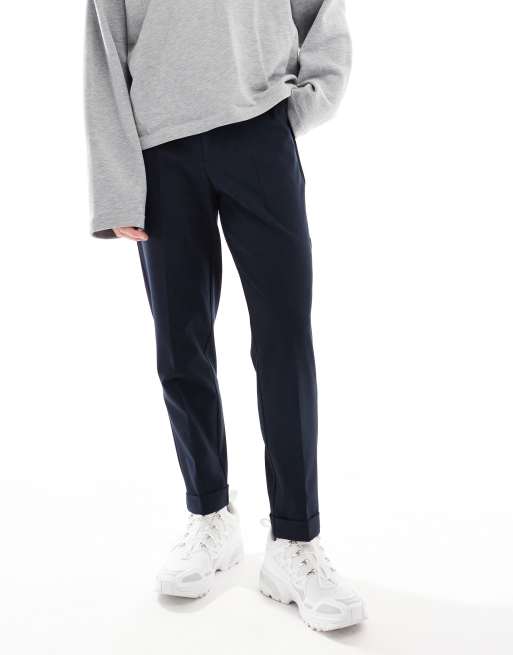 ASOS DESIGN smart tapered fit chino trousers in navy with half elasticated waist