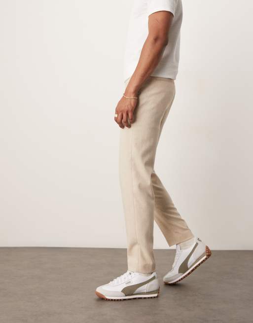 ASOS DESIGN smart tapered fit trousers with wool in light stone
