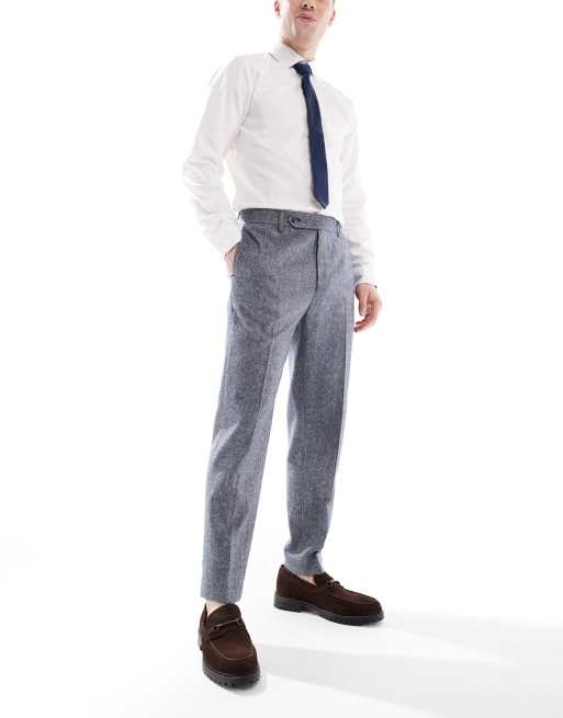 ASOS DESIGN smart tapered fit wool mix trousers in navy