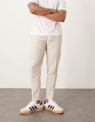 ASOS DESIGN smart tapered fit wool mix trousers with front pleat in stone