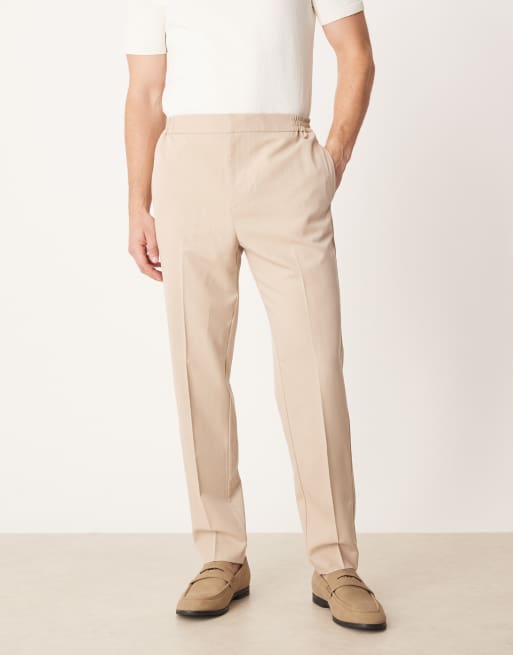 ASOS DESIGN smart tapered trouser with elasticated waist in neutral pinstripe