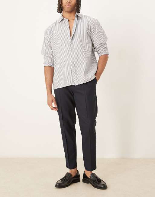 ASOS DESIGN smart tapered trousers with front pleat in navy microtexture
