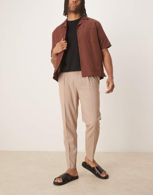 ASOS DESIGN smart tapered trousers with front pleat in stone melange