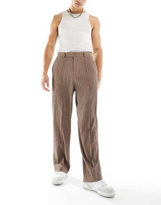 ASOS DESIGN smart wide fit trousers in brown textured fabric