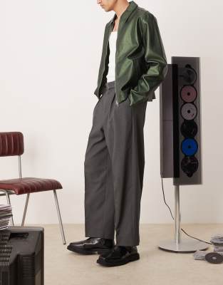 ASOS DESIGN smart wide leg belted trouser with front pleat in charcoal