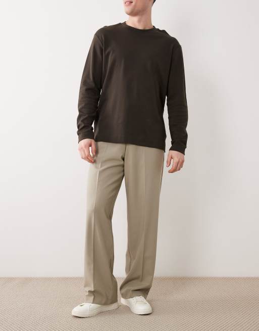 ASOS DESIGN smart wide leg comfort stretch trousers in sage green twill with elasticated waist
