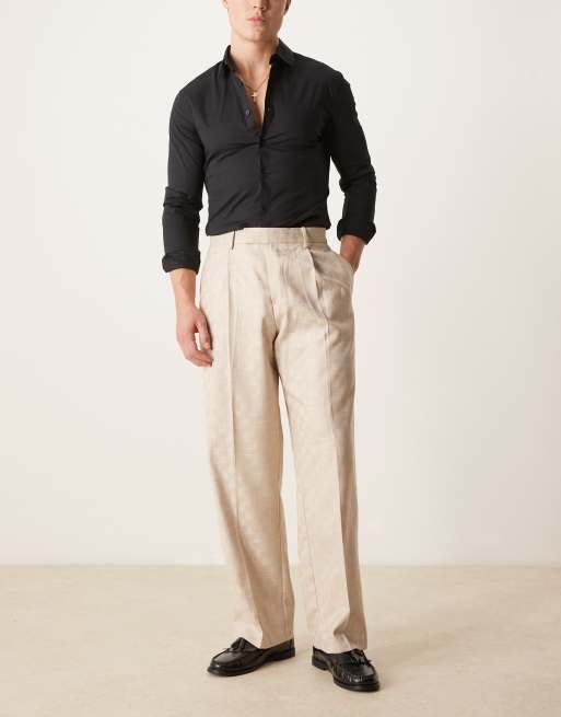 ASOS DESIGN smart wide leg jacquard trousers in stone with front pleat