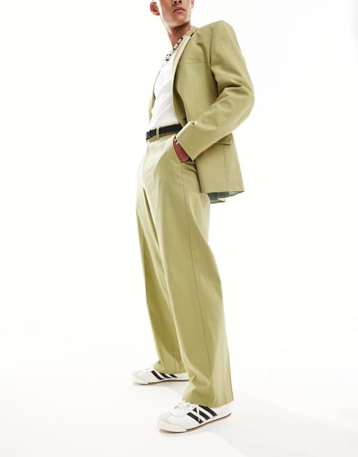 ASOS DESIGN smart wide leg linen blend trousers in sage green