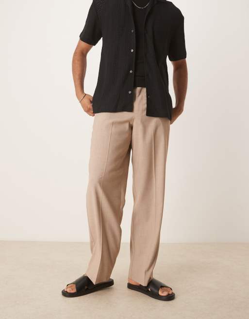 ASOS DESIGN smart wide leg trouser with front pleat in beige melange