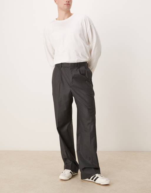 ASOS DESIGN smart wide leg trousers with double pleats in charcoal