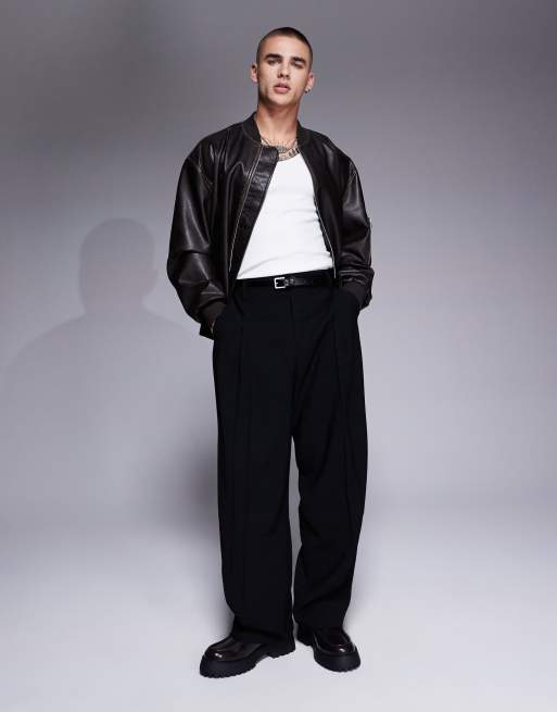 ASOS DESIGN smart wide leg trousers with front pleat in black