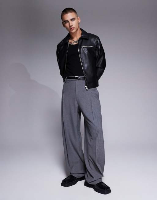ASOS DESIGN smart wide leg trousers with front pleat in grey