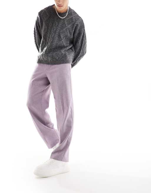 ASOS DESIGN smart wide leg wool mix trousers in purple herringbone