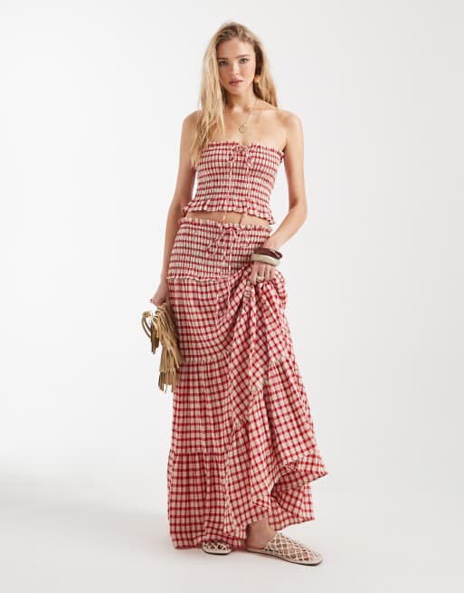 ASOS DESIGN smocked waist tiered co-ord maxi skirt in gingham