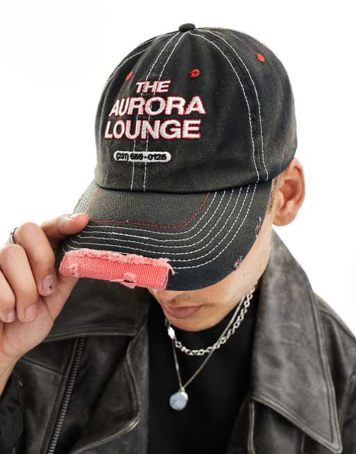 ASOS DESIGN soft baseball with graphic embroidery in black