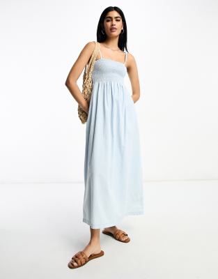 ASOS DESIGN soft denim bandeau midi dress in lightwash blue