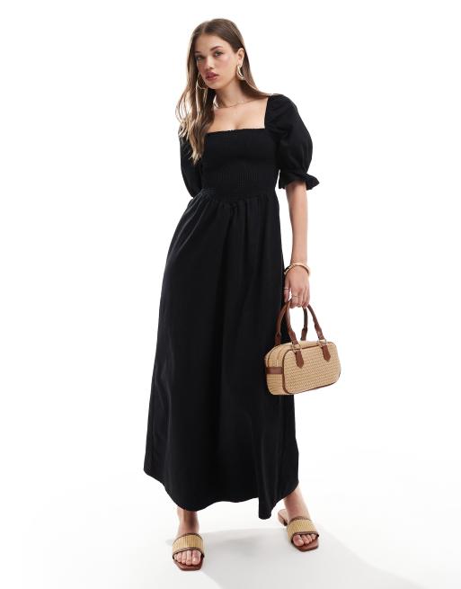ASOS DESIGN soft denim maxi dress with puff sleeves in black