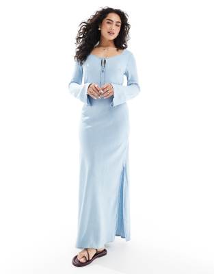 ASOS DESIGN soft denim maxi dress with tie front in light blue