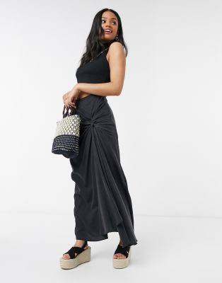ASOS DESIGN soft denim maxi skirt with ruching detail
