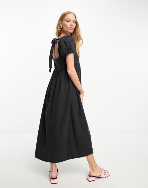 ASOS DESIGN soft denim midi dress with tie back detail in black
