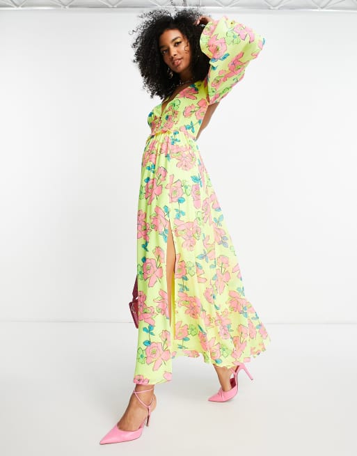 ASOS DESIGN soft shirred waist open back maxi dress in yellow floral
