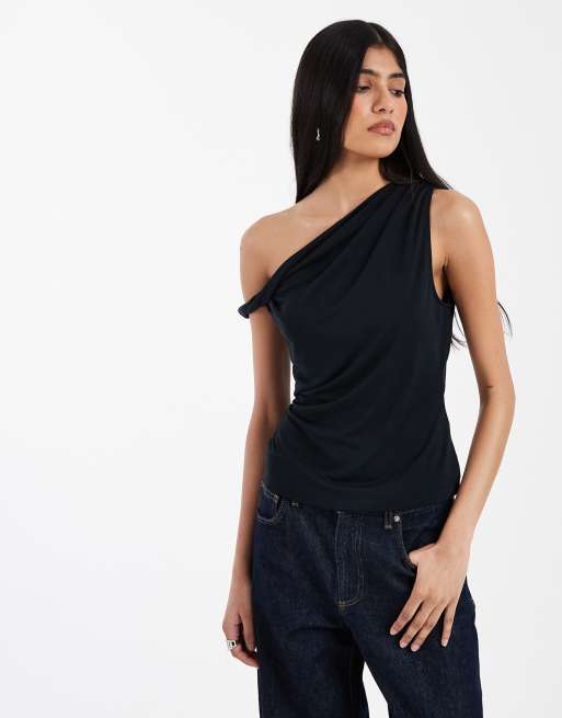 ASOS DESIGN soft touch twist off shoulder top in black - BLACK
